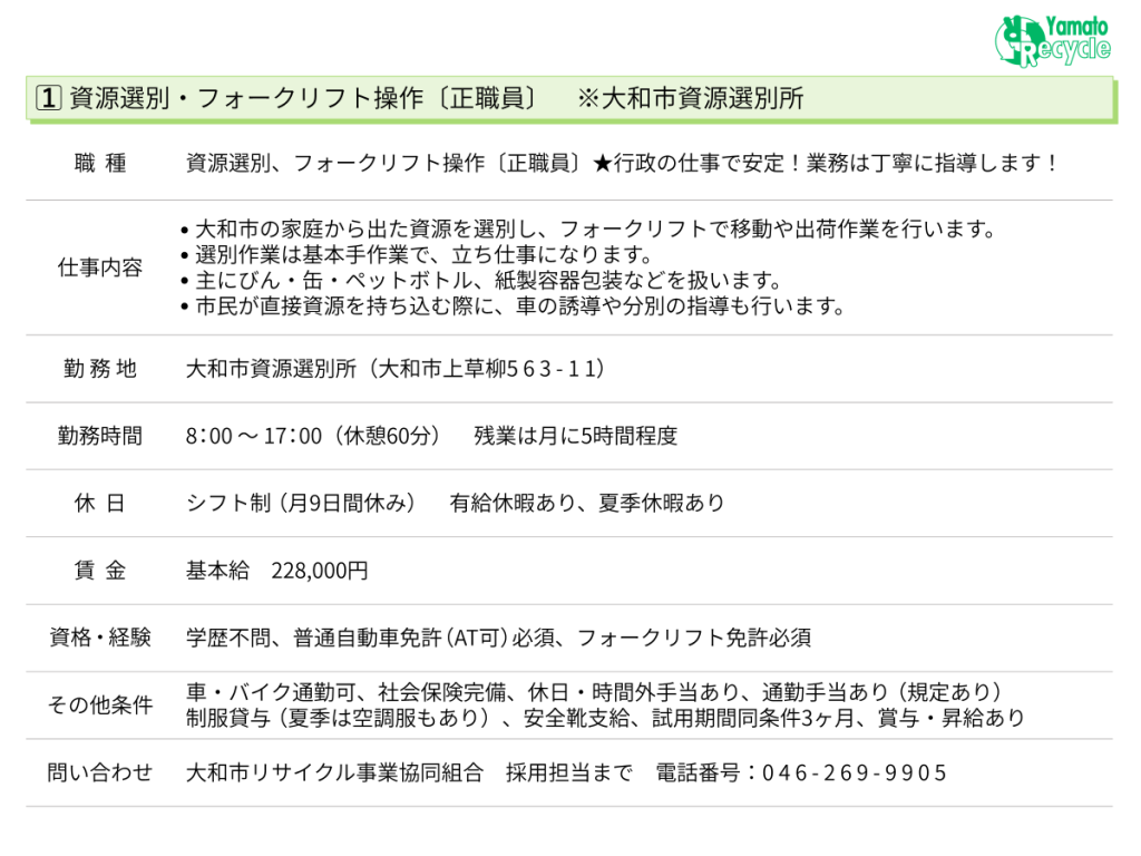 採用情報を公開しました!〈大和市資源選別所・柳橋エコセンター〉