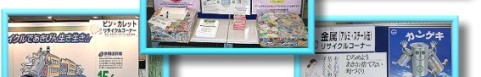 古紙・古繊維・金属・びん・カレットなど、各資源ごとに展示ブースを設置しました。
