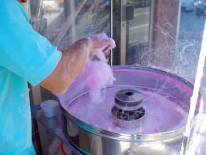 | 会場出口付近では資源回収ドライバーによる手作りコーナーも。たまご型ろうそくは大人気でした!(写真が出来次第のせますね!) | 帰りに神谷専務理事から、わたあめのプレゼント!。。。。しかし最初はこのようにフワフワが絡みついてベットベトに!!練習したらちゃんときれいに出来ました(^^ゞ |