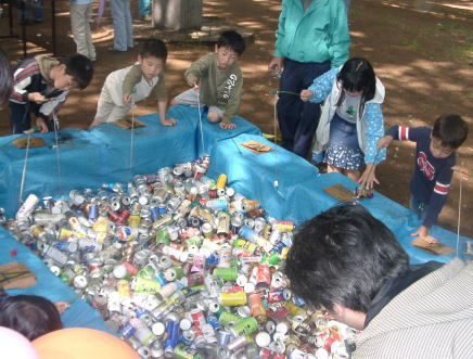 | 青年部部長 福留秀雄です。いい顔してます。 | 恒例の缶つりにはぐるっとお子様が。みんな目が真剣! |