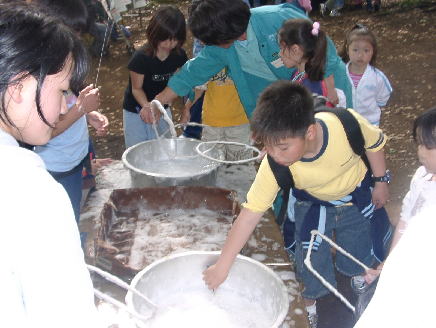 | なお、今回はお子様向けの缶釣りに加え、巨大なシャボン玉遊びにも注目を集めておりました。 |