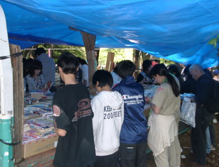 | 組合は今年も大人気の古本販売と、こちらも大盛況の青年部によるジーパン販売をメインに行いました。 |