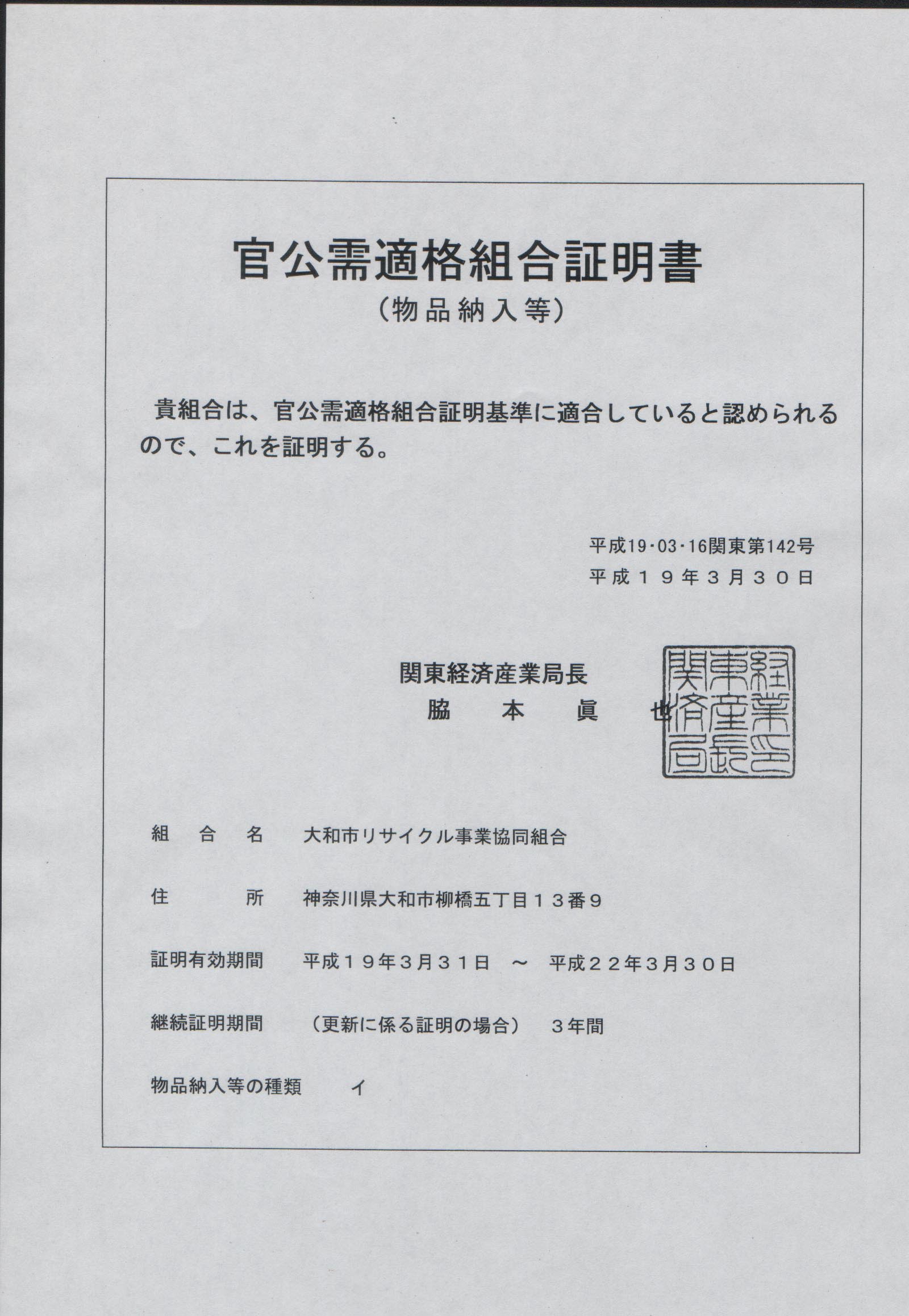 この証明書を受け取り、組合一同益々活気のある事業を展開して行きたいと思います。