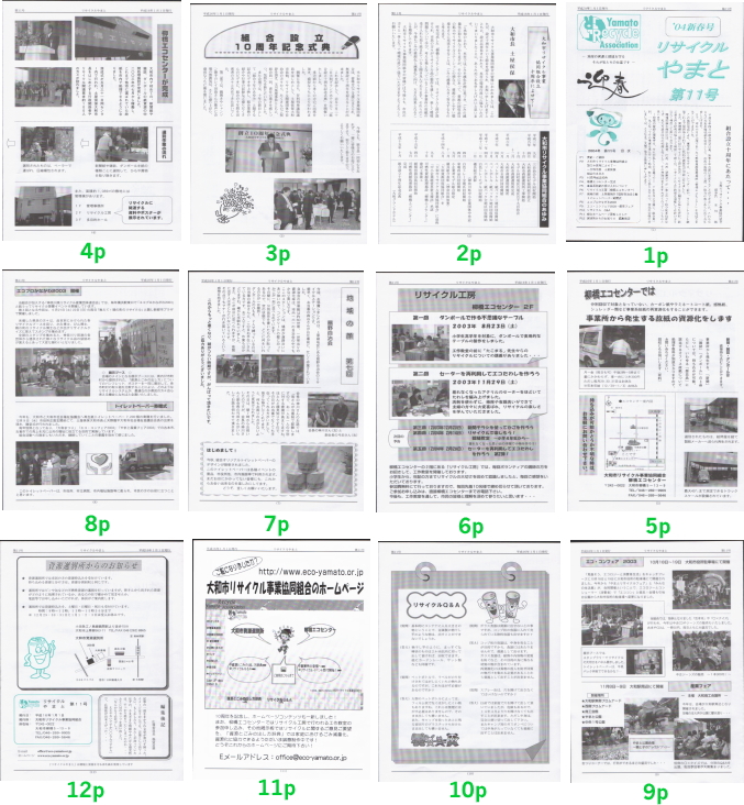 当組合の広報誌「リサイクル大和」の第11号が今年も1月1日付けで発行されました。前年と違い、ページ数も増えどんな方にも大変読みやすくなっております。また、この広報誌は各大和市内の公共施設の窓口へ配布致します。どうぞお手にとってご覧ください。