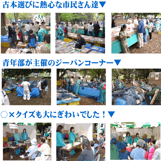 大和市民まつり実行委員会(野口栄三郎委員長)が主催する「第27回大和市民まつり」が8日、9日の 2日間、大和市柳橋四丁目の引地台公園をメーン会場に、今年からは大和駅西側プロムナードでも開 催されました。8日はそこそこのお天気でしたが、9日は午後から生憎の雨が降り注ぎましたが、古本 市や青年部主催のジーパン販売、いつも人気の○×クイズにはたくさんの人がご来場くださいました!